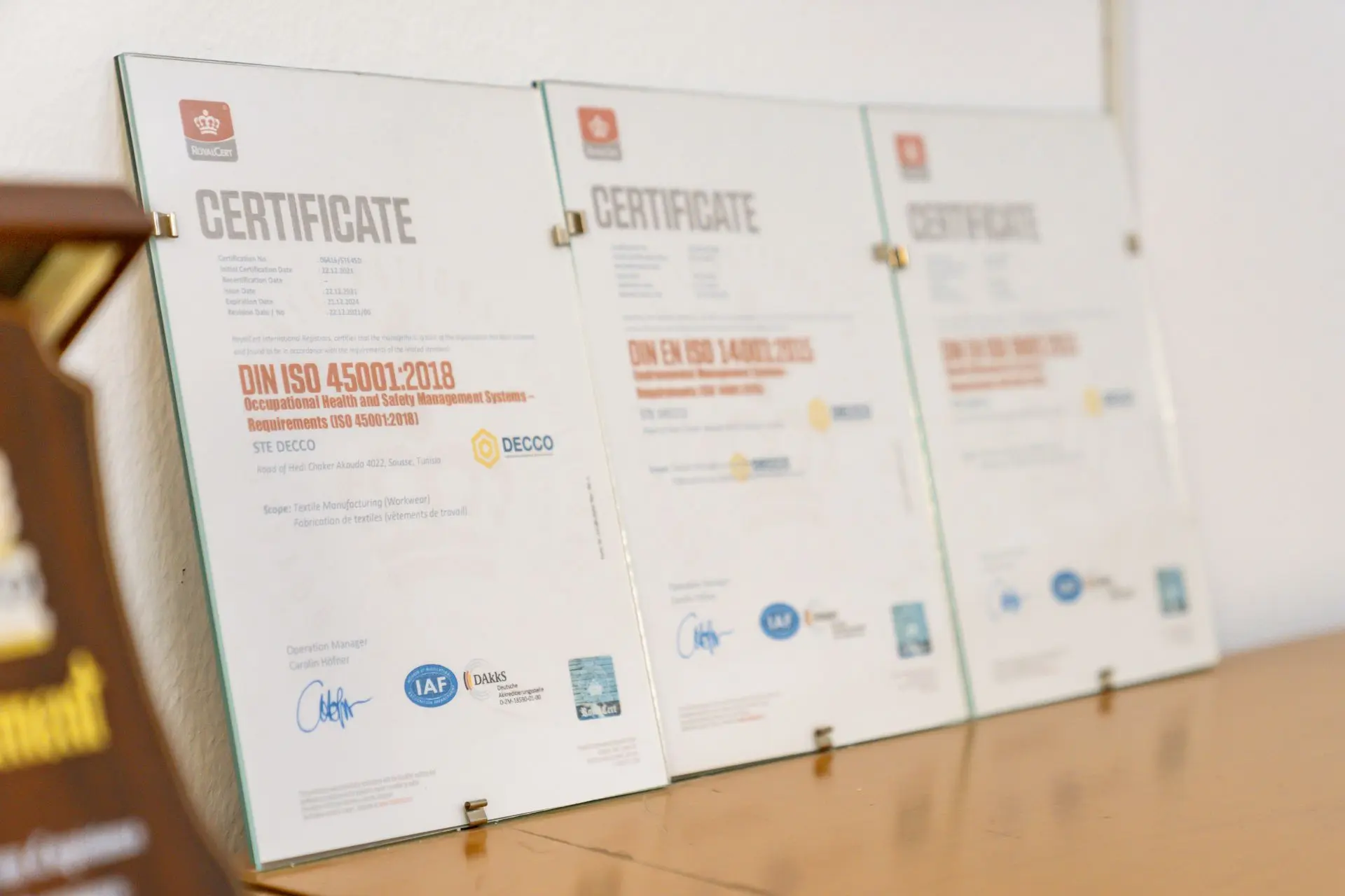 Onze productie voldoet aan ISO 9001, ISO 14001 en ISO 45001.